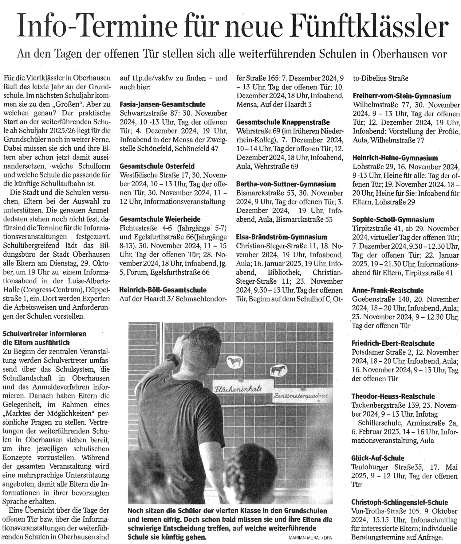 Zeitungsartikel mit den Terminen der Tage der offenen Tür